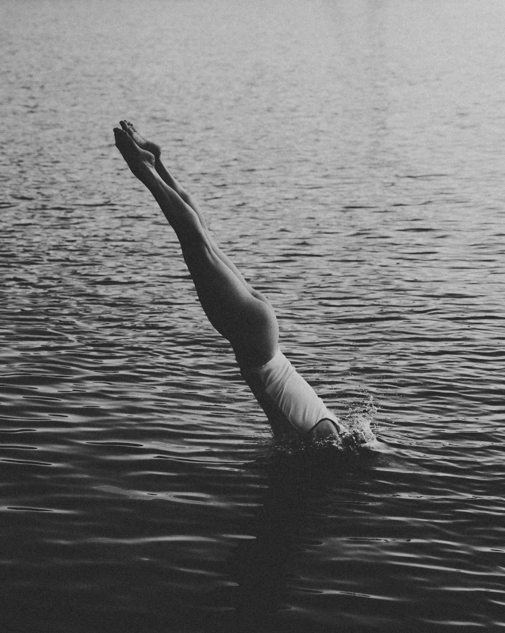 In black and white, the image reveals the grace of an athletic body plunging into the crystal-clear waters of Majorca, a perfect line that seems to defy the laws of gravity. Only his head touches the water, a symbolic immersion in the unknown, where time stands still. The beauty of the gesture lies in this anticipation, in the momentum before freedom, captured with striking precision by the artist.